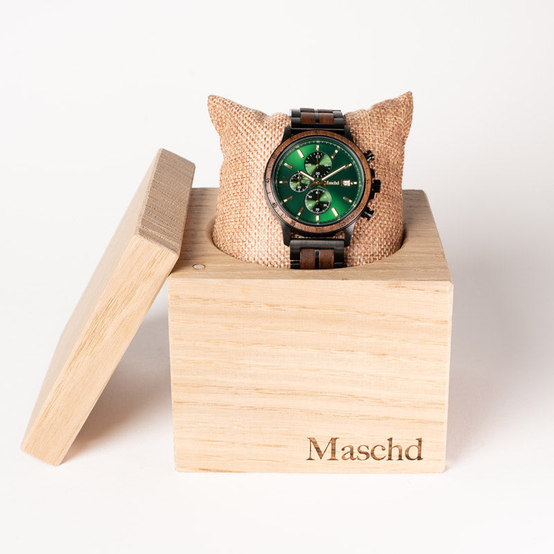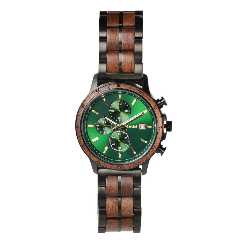 Walnuss Chronograph Grün – Herren Holzuhr