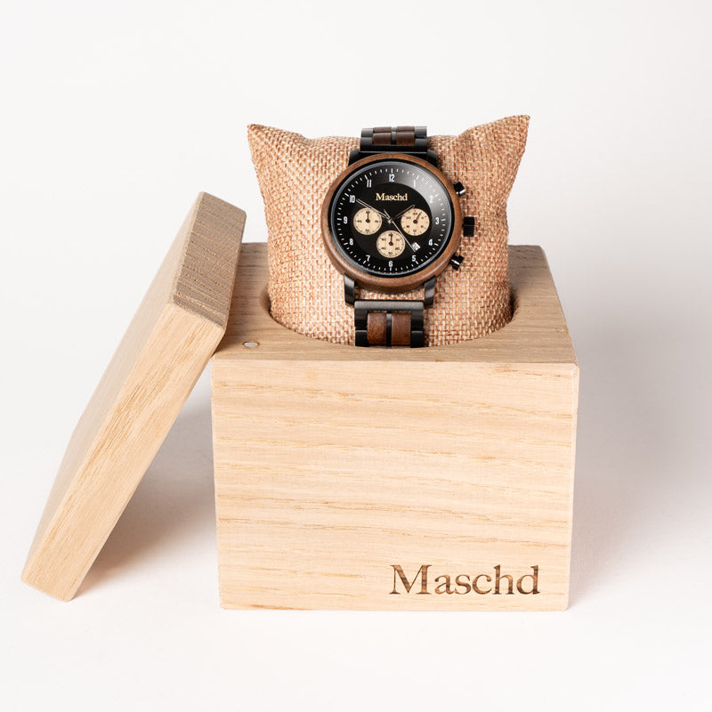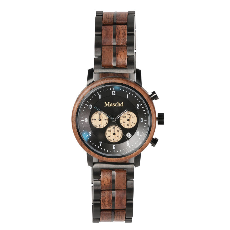 Walnuss Chronograph Schwarz – Herren Holzuhr