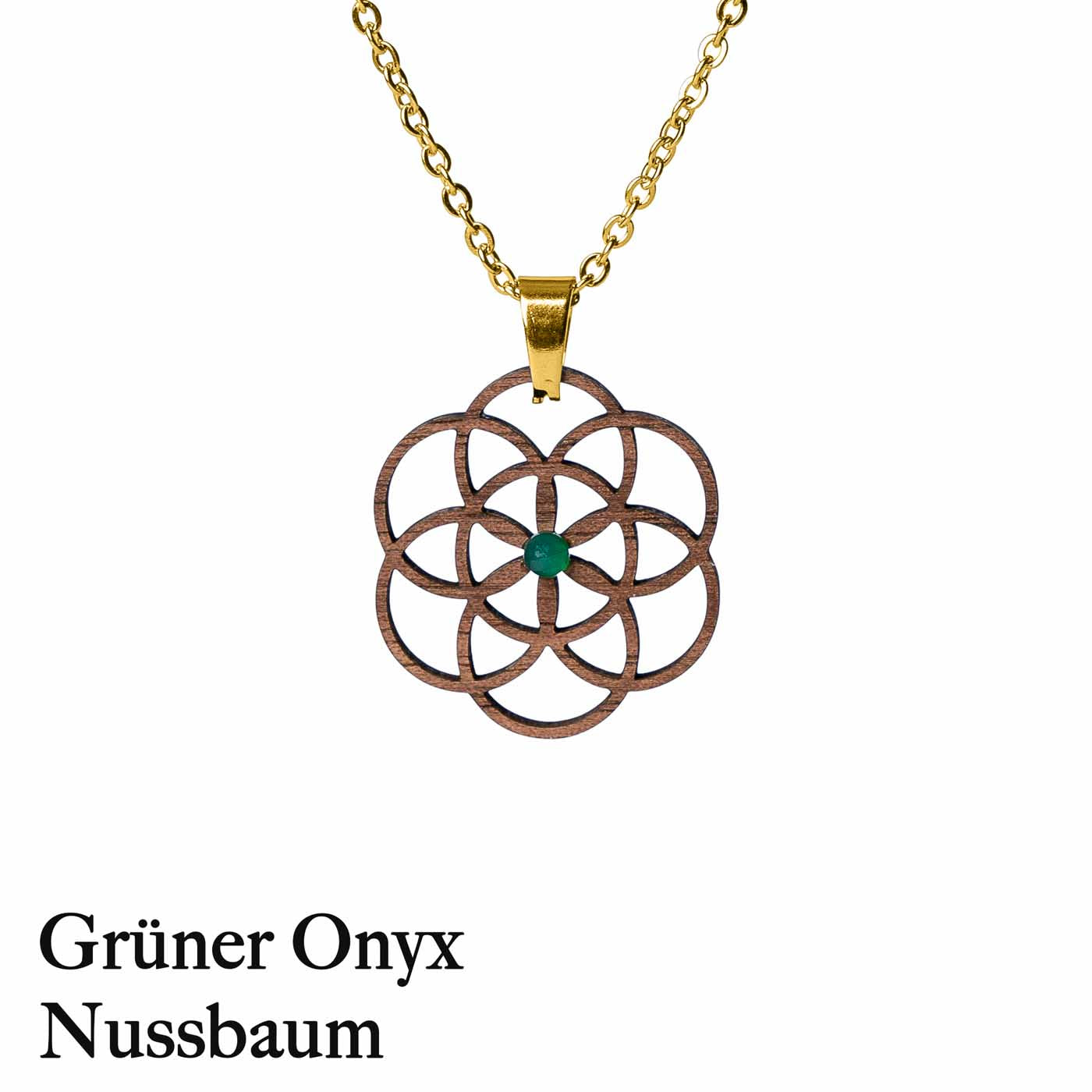 Samen des Lebens Amulett aus Nussbaum mit Grünen Onyx