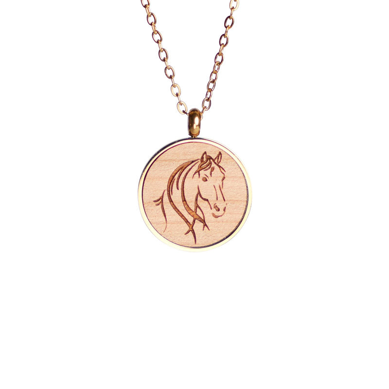 Halskette mit einem Pferde Motiv aus Kirschholz