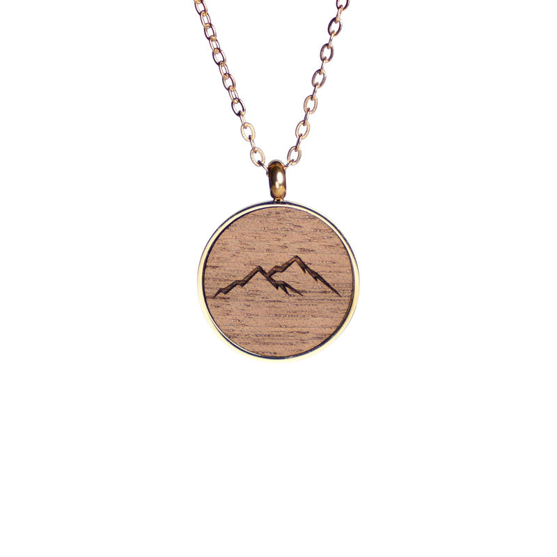 Halskette berg motiv in nussbaum